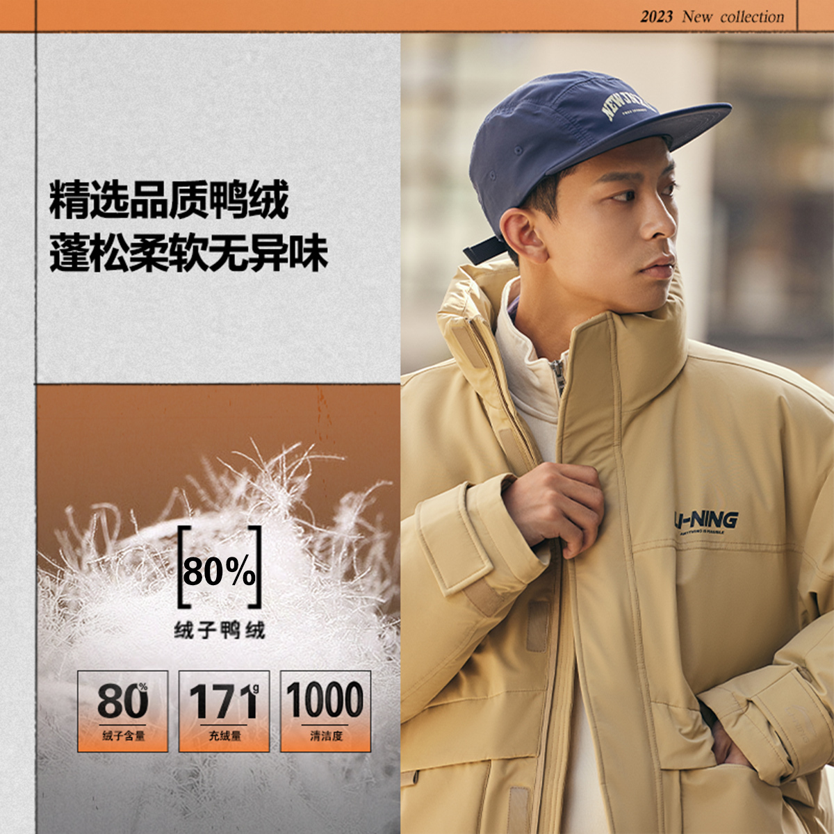 LiNing Fondue Down Series Пуховик Унисекс Настоящий Хаки, Подлинный Хаки