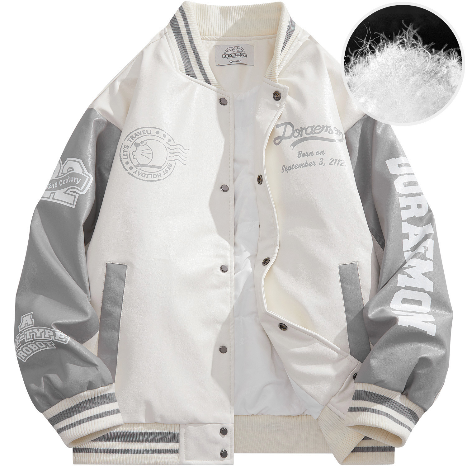 Бейсбольная куртка унисекс Doraemon, черная (из искусственной кожи)