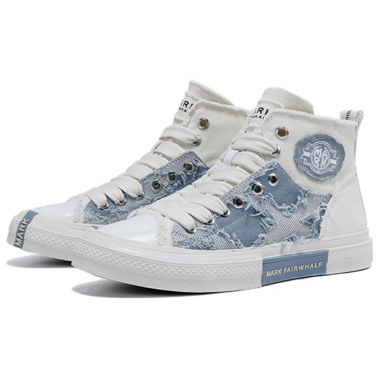 Высокие кеды из холста унисекс бело-голубые FAIRWHALE