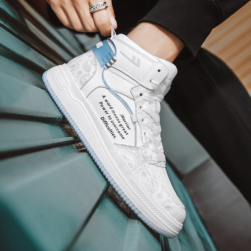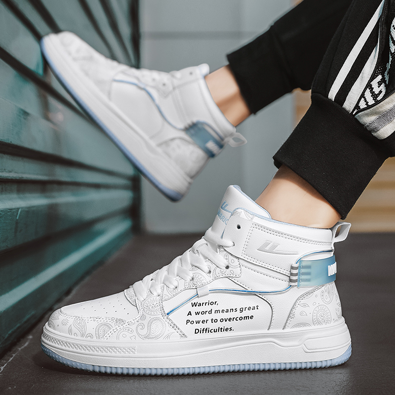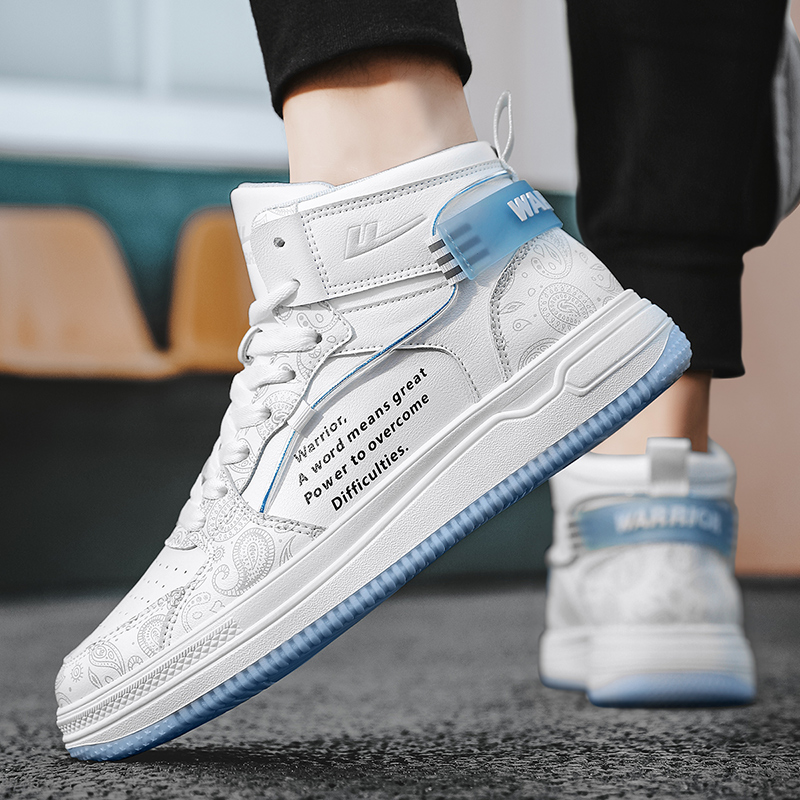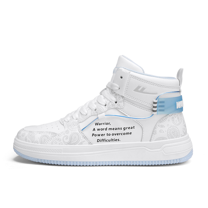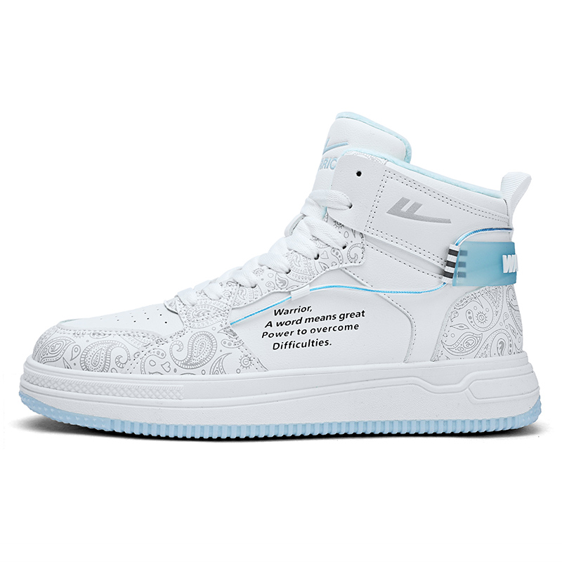 Кроссовки для скейтбординга унисекс высокие серо-голубые WARRIOR, бело-черные