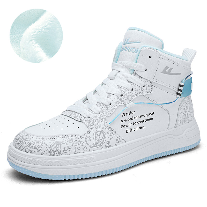 Кроссовки для скейтбординга унисекс высокие серо-голубые WARRIOR, белые темно-синие светло-голубые с флисовой подкладкой