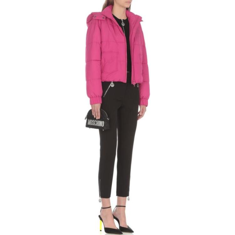 Куртка пуховая с капюшоном и вышитым логотипом MOSCHINO, фуксия