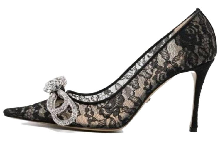 Туфли-лодочки с двойным бантом 95 мм MACH & MACH, черные