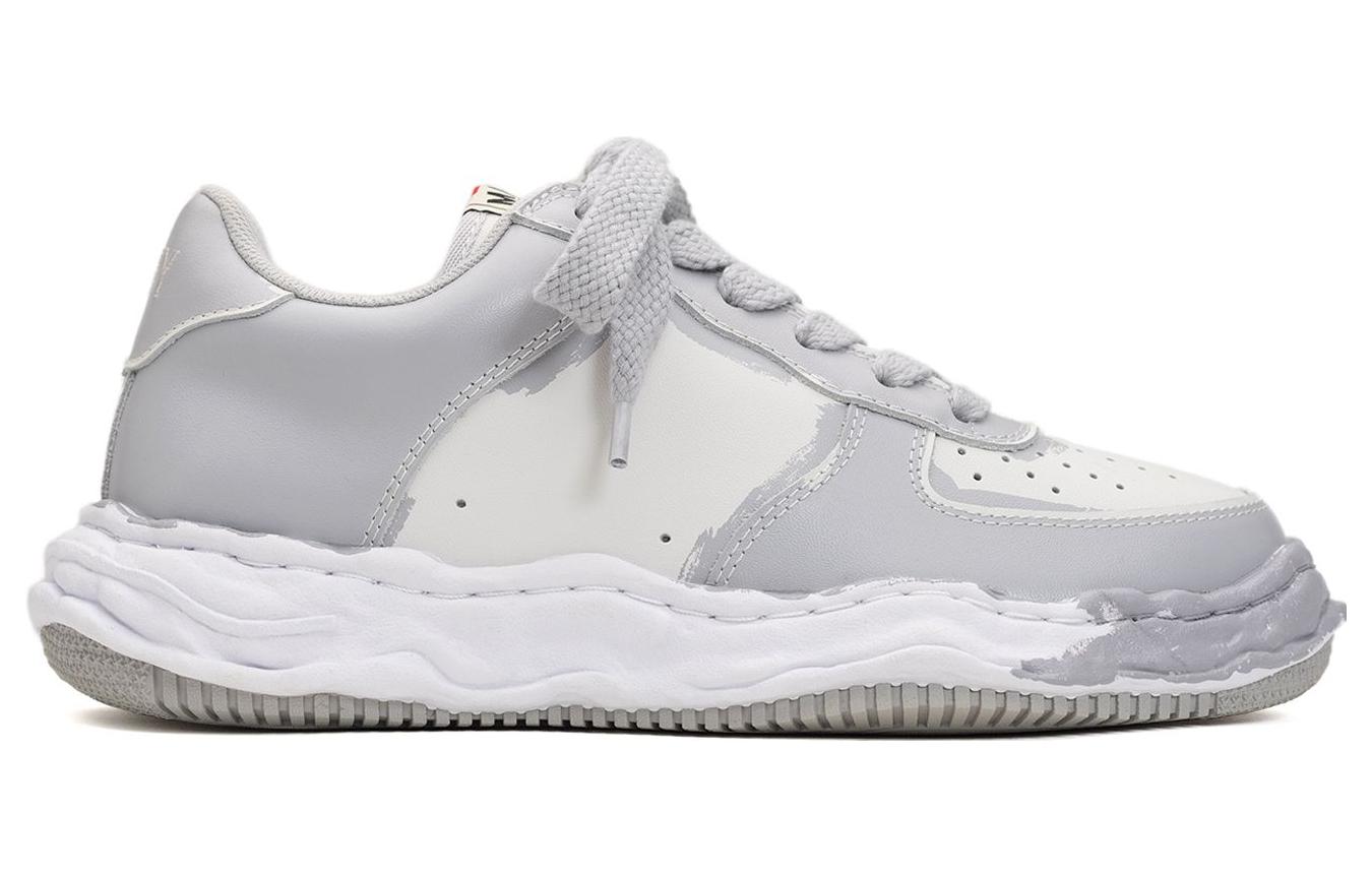 Маизон Уэйн Ог Кроссовки с принтом из кожи низкие черно-белые MIHARA YASUHIRO, серо-белые