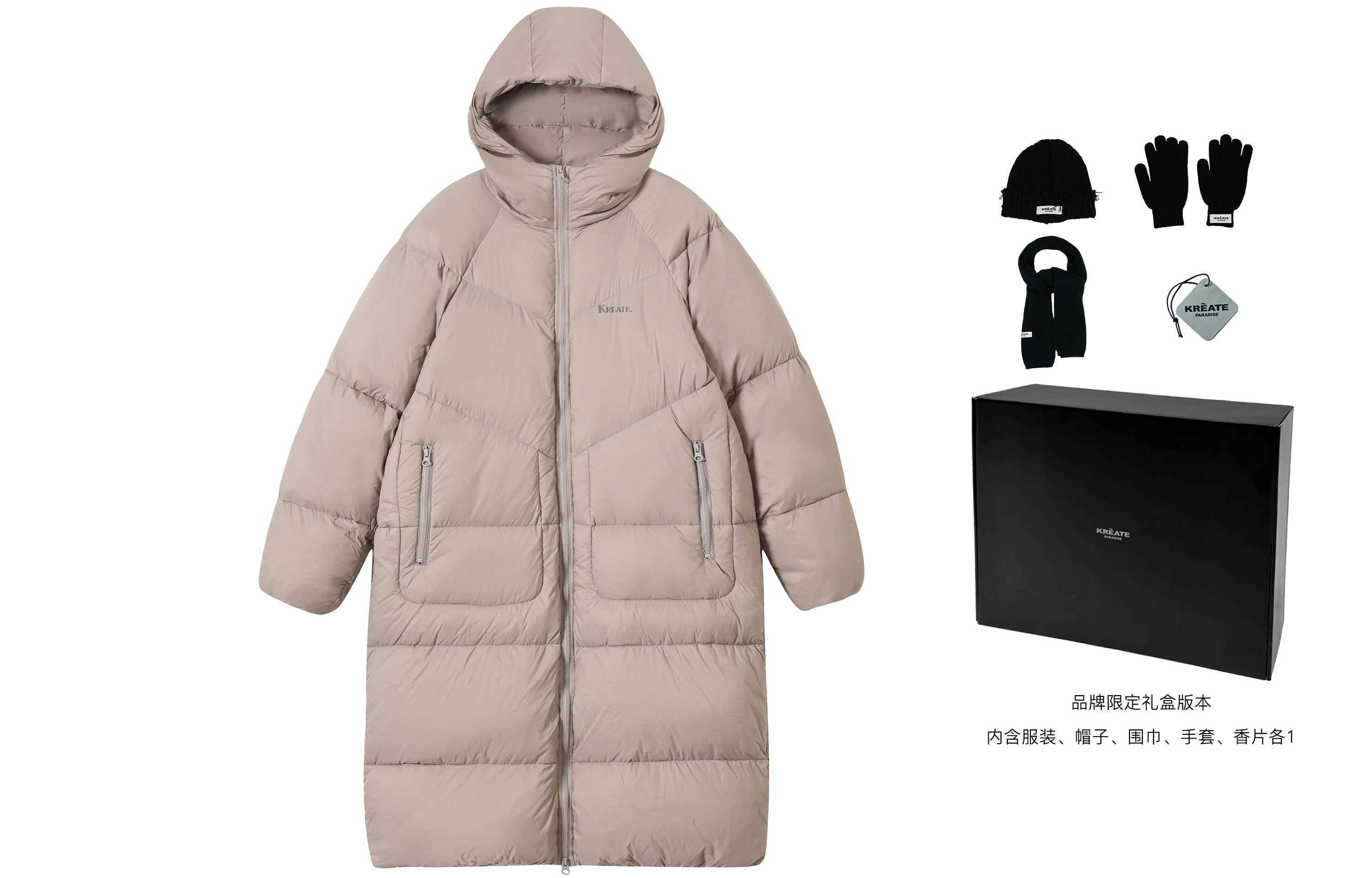Пуховик унисекс KREATE, серо-абрикосовый (утепленный длинный)