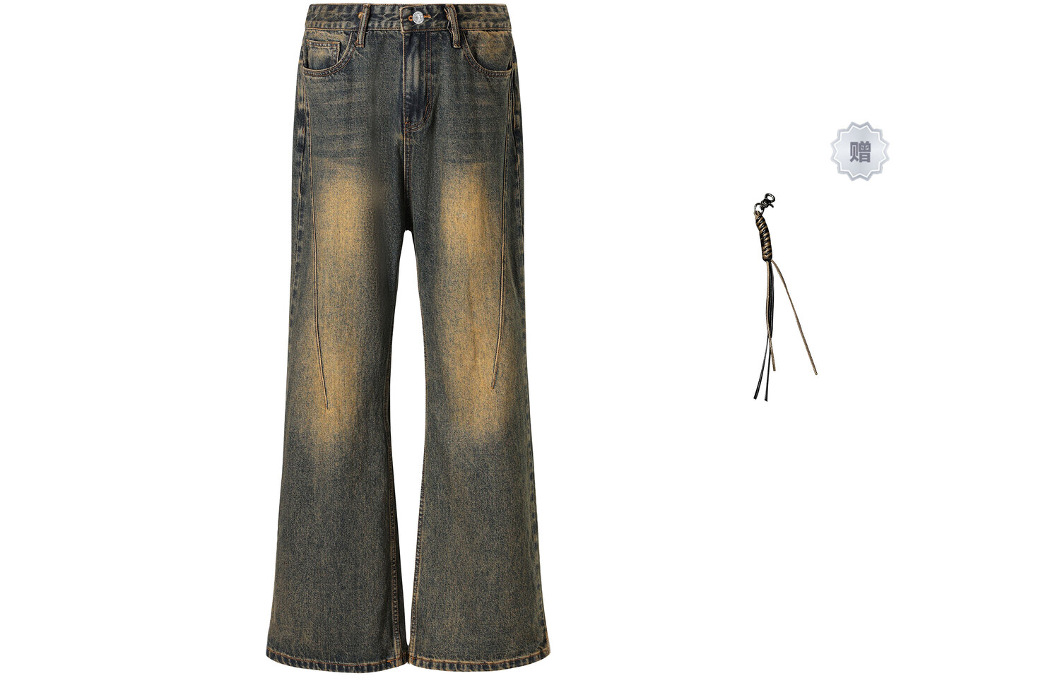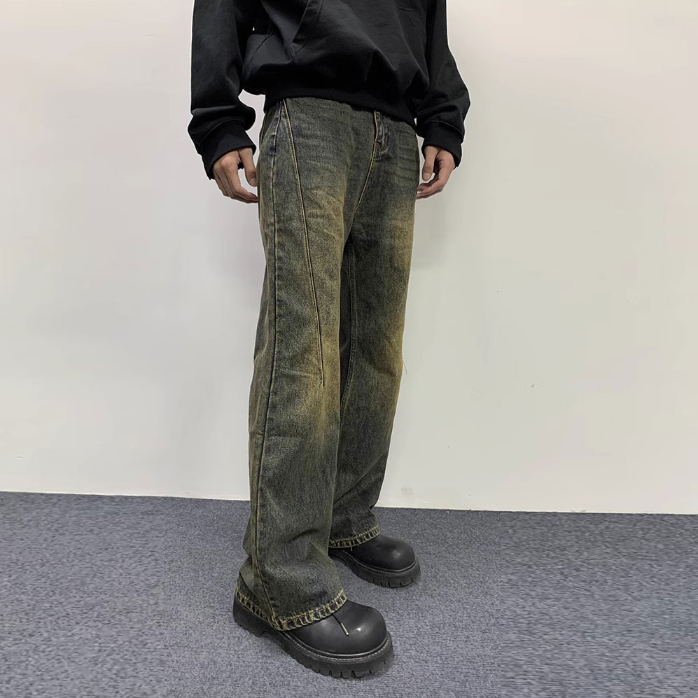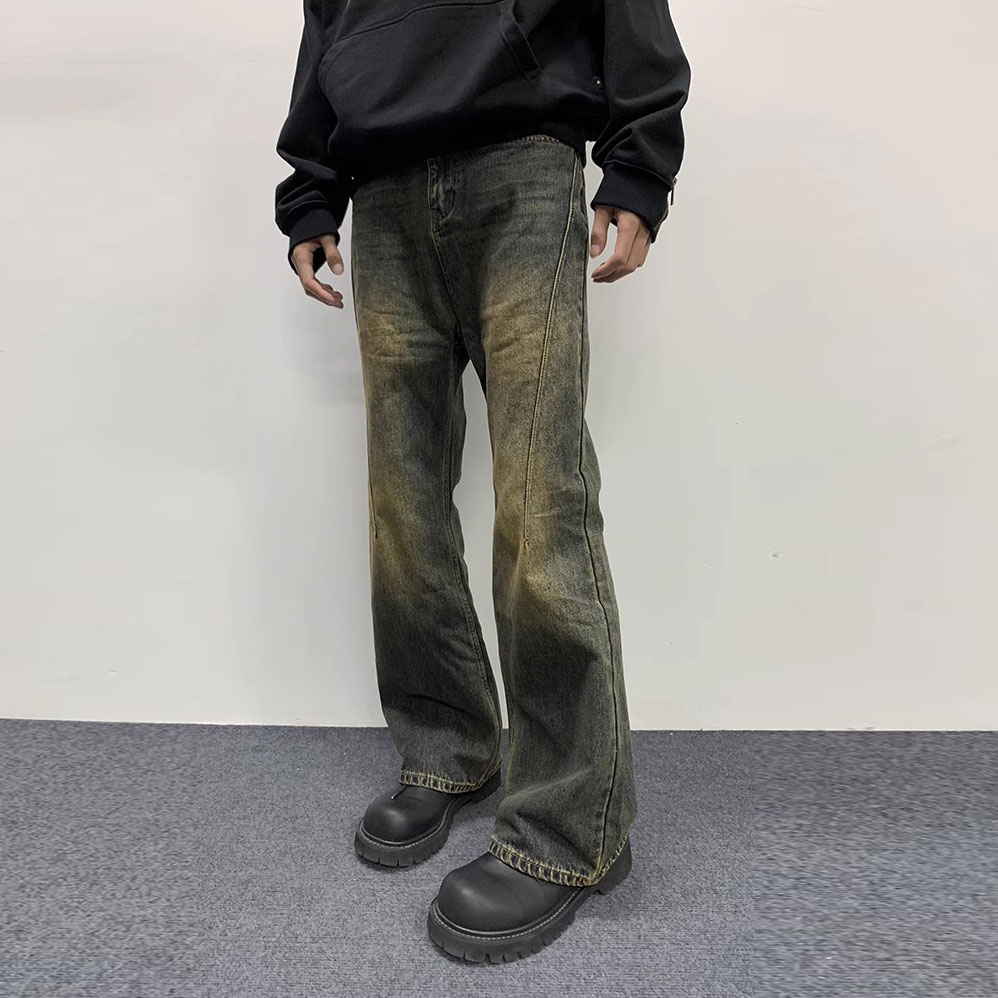 Изготовленная из плотного чесаного хлопкового денима, эта ткань приятна для кожи и широка. Брюки имеют слегка расклешенный силуэт, подчеркивающий форму ног. При точном пошиве джинсов используются импортные эластичные мерсеризованные нитки с плоским челноком и метод плотного пришивания джинсовой ткани для обеспечения надежной посадки. Из-за интенсивной стирки и состаривания может наблюдаться незначительный износ краев карманов, штанин, пояса и планки. Это связано с особенностями изготовления и не является признаком качества. [Следуйте инструкциям по стирке и уходу на странице с описанием.]