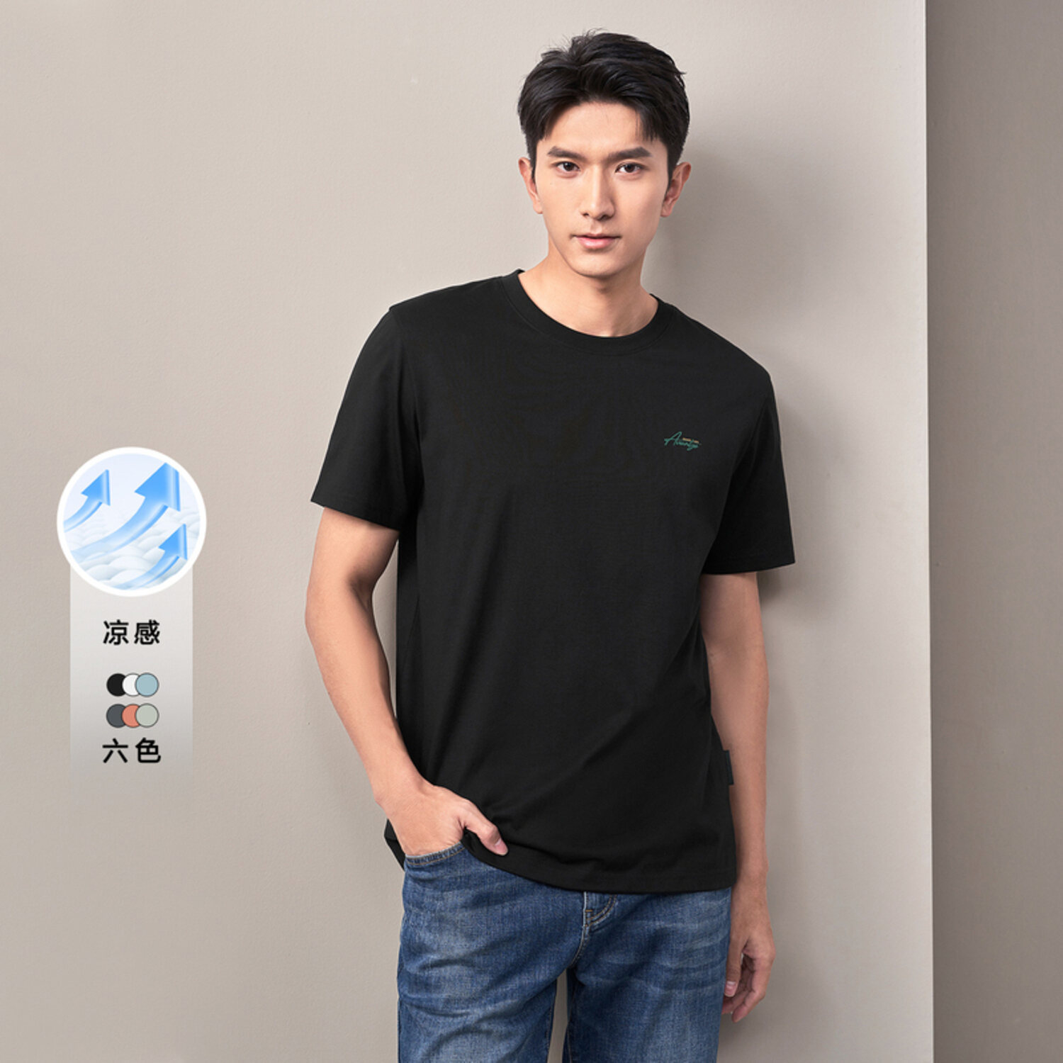 Футболка HLA мужская, средний синий 4D (с подарочным пакетом)