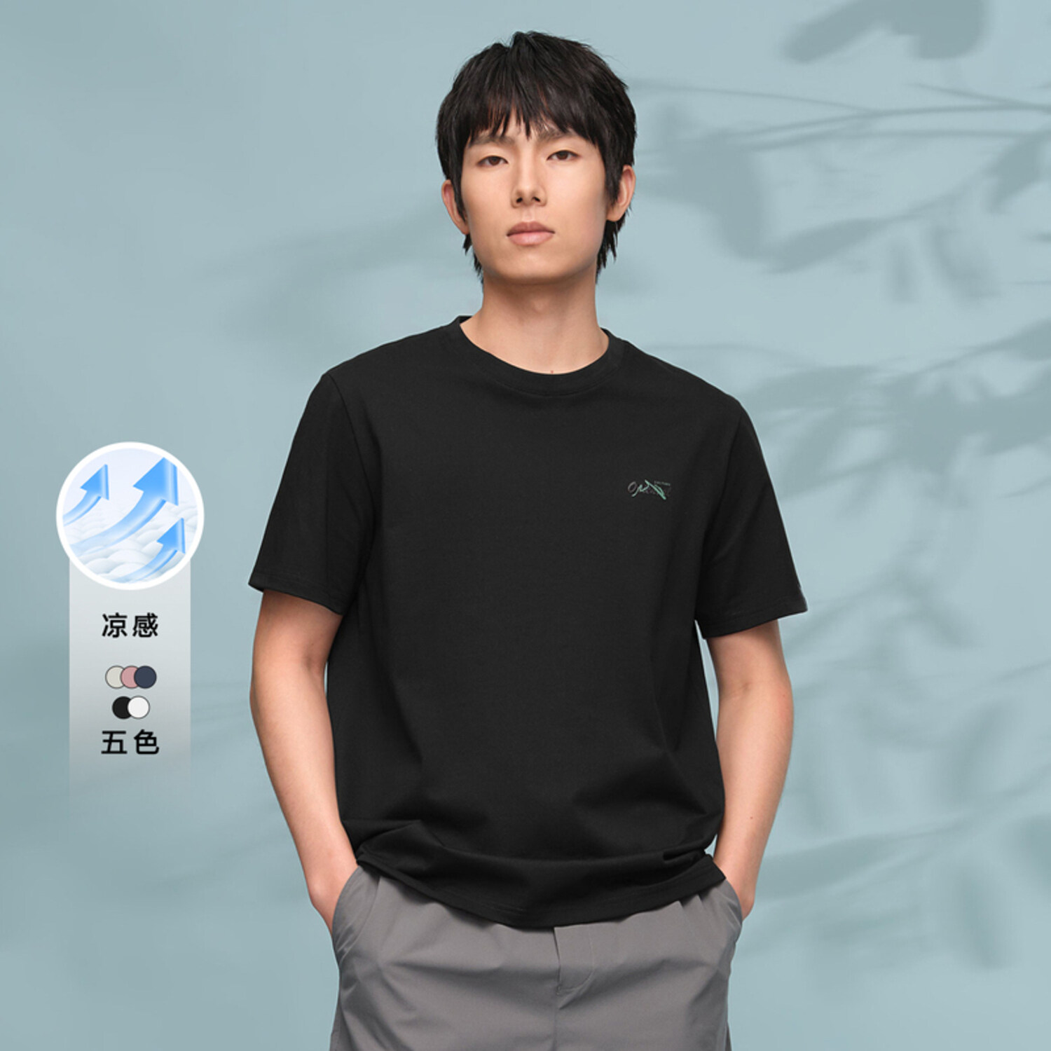 Классический круглый вырез горловины с контрастными манжетами с буквами.