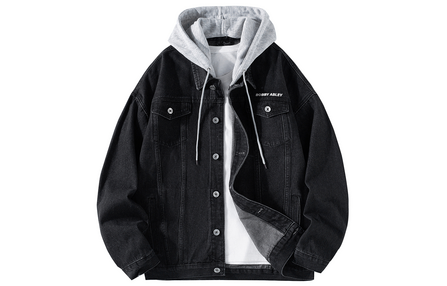 Джинсовая куртка унисекс BOBBY ABLEY, черная с капюшоном