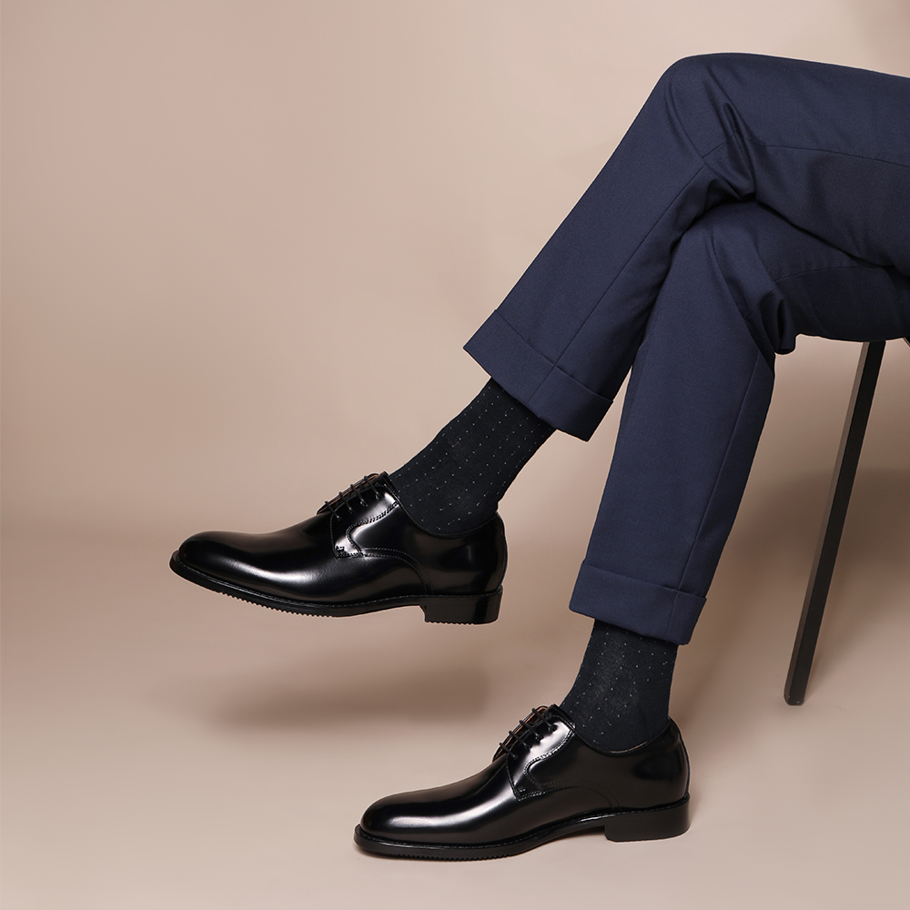 1. Высококачественная зернистая воловья кожа с мягким краем мягкая, удобная и дышащая, сохраняя форму и не сминаясь со временем. Изысканный блеск подчеркивает изысканный и стильный образ. 2. Резиновая подошва обеспечивает нескользящую, износостойкую амортизацию с лёгким отскоком. 3. Подкладка из овечьей кожи обеспечивает комфорт и воздухопроницаемость. 4. Антибактериальная стелька с кофейным порошком обеспечивает амортизацию и лёгкий отскок, а также обладает антибактериальными и дезодорирующими свойствами, сохраняя ноги сухими. Эти классические дерби с регулируемым подъёмом обеспечивают улучшенную посадку и комфорт.