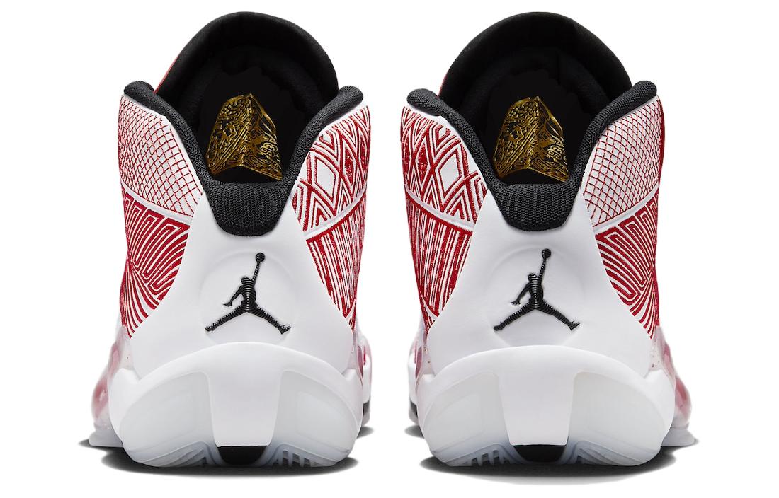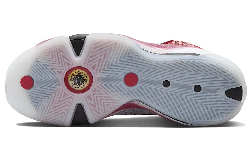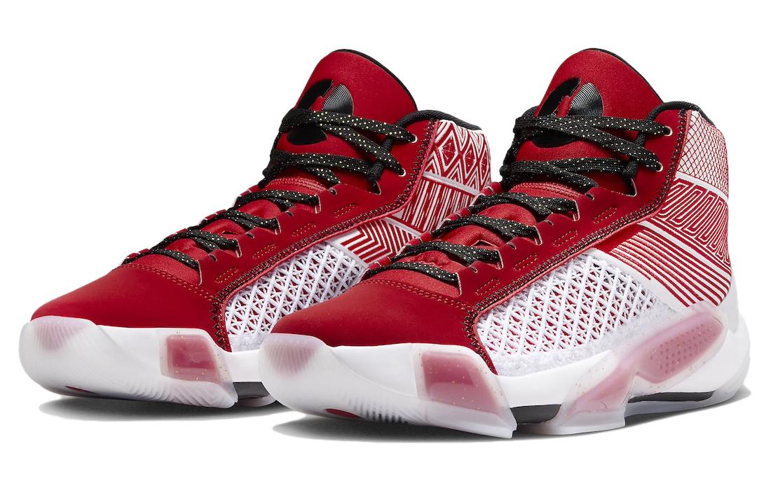 38 Праздничные Jordan с прозрачной подошвой, красно-белые