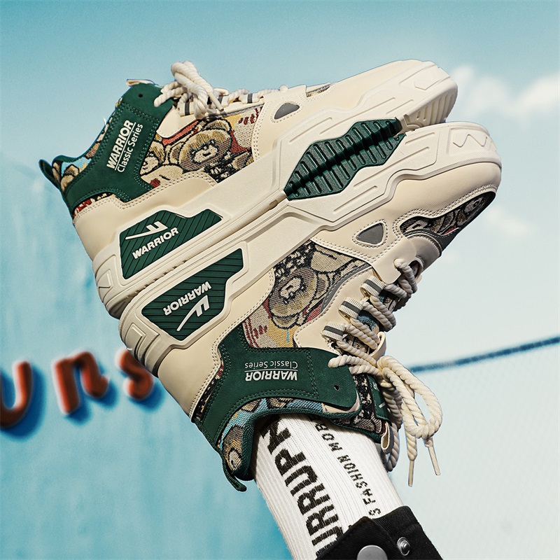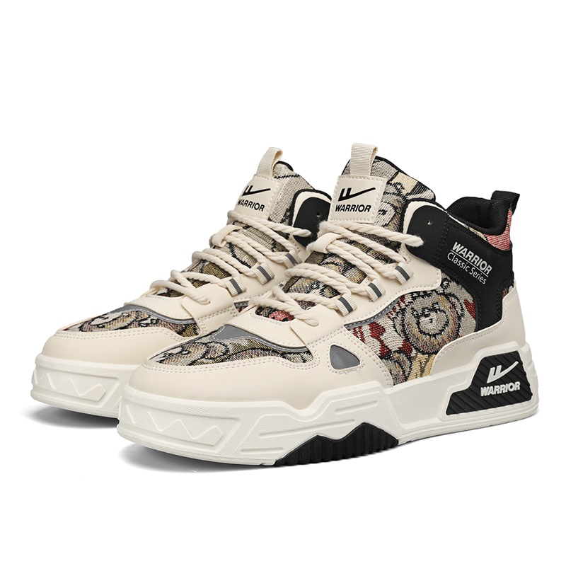 Кроссовки Warrior имеют классический силуэт с новыми деталями. Верх из синтетической кожи создаёт простой, но фактурный образ. Подошва отличается богатым фактурным рисунком.