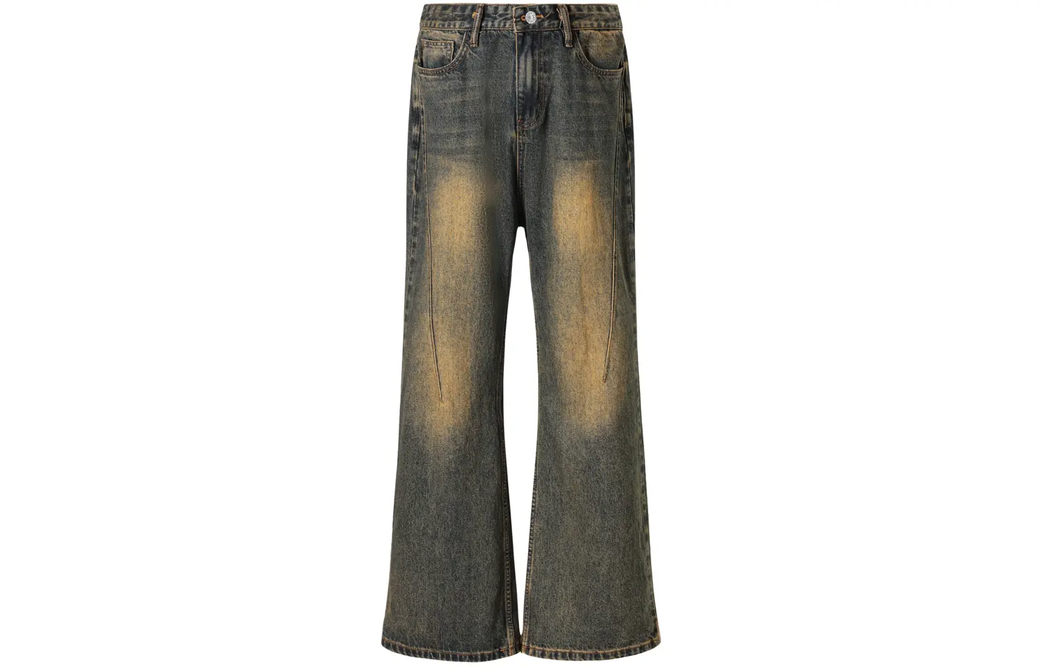 Изготовленная из плотного чесаного хлопкового денима, эта ткань приятна для кожи и широка. Брюки имеют слегка расклешенный силуэт, подчеркивающий форму ног. При точном пошиве джинсов используются импортные эластичные мерсеризованные нитки с плоским челноком и метод плотного пришивания джинсовой ткани для обеспечения надежной посадки. Из-за интенсивной стирки и состаривания может наблюдаться незначительный износ краев карманов, штанин, пояса и планки. Это связано с особенностями изготовления и не является признаком качества. [Следуйте инструкциям по стирке и уходу на странице с описанием.]