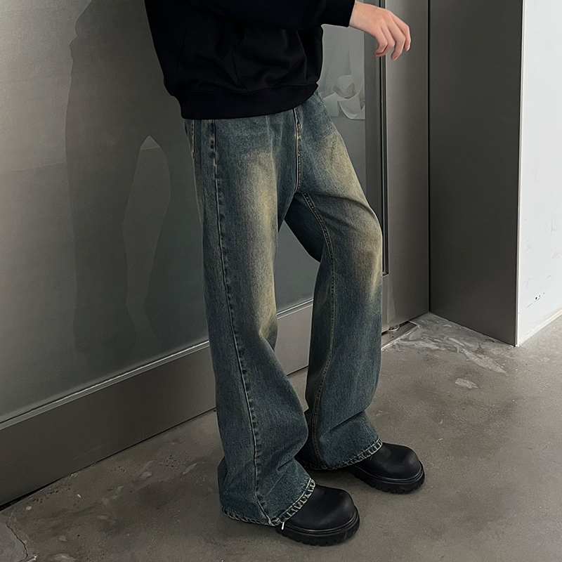 Изготовленная из плотного чесаного хлопкового денима, эта ткань приятна для кожи и широка. Брюки имеют слегка расклешенный силуэт, подчеркивающий форму ног. При точном пошиве джинсов используются импортные эластичные мерсеризованные нитки с плоским челноком и метод плотного пришивания джинсовой ткани для обеспечения надежной посадки. Из-за интенсивной стирки и состаривания может наблюдаться незначительный износ краев карманов, штанин, пояса и планки. Это связано с особенностями изготовления и не является признаком качества. [Следуйте инструкциям по стирке и уходу на странице с описанием.]