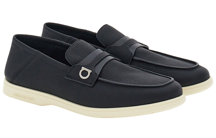 Эти мягкие лоферы Salvatore Ferragamo, изготовленные из итальянской телячьей кожи, излучают непринужденную элегантность и роскошь. Миндалевидный носок и необработанная окантовка на союзке дополняют непринужденный образ. Двойная горизонтальная полоска над подъемом украшена небольшой пряжкой Gancini с титановым покрытием. Туфли на гибкой белой резиновой подошве.