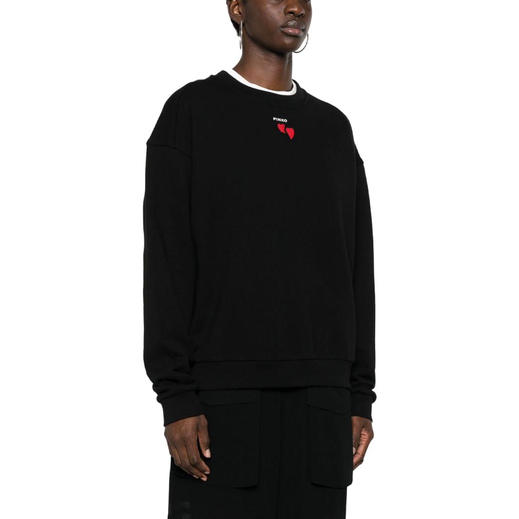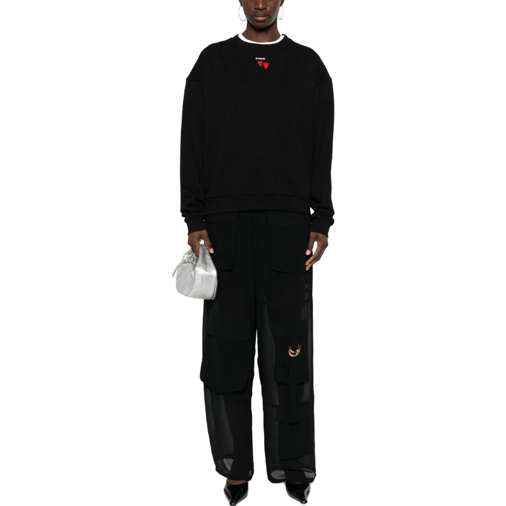 Свитер из хлопка с интарсией логотипом PINKO, черный