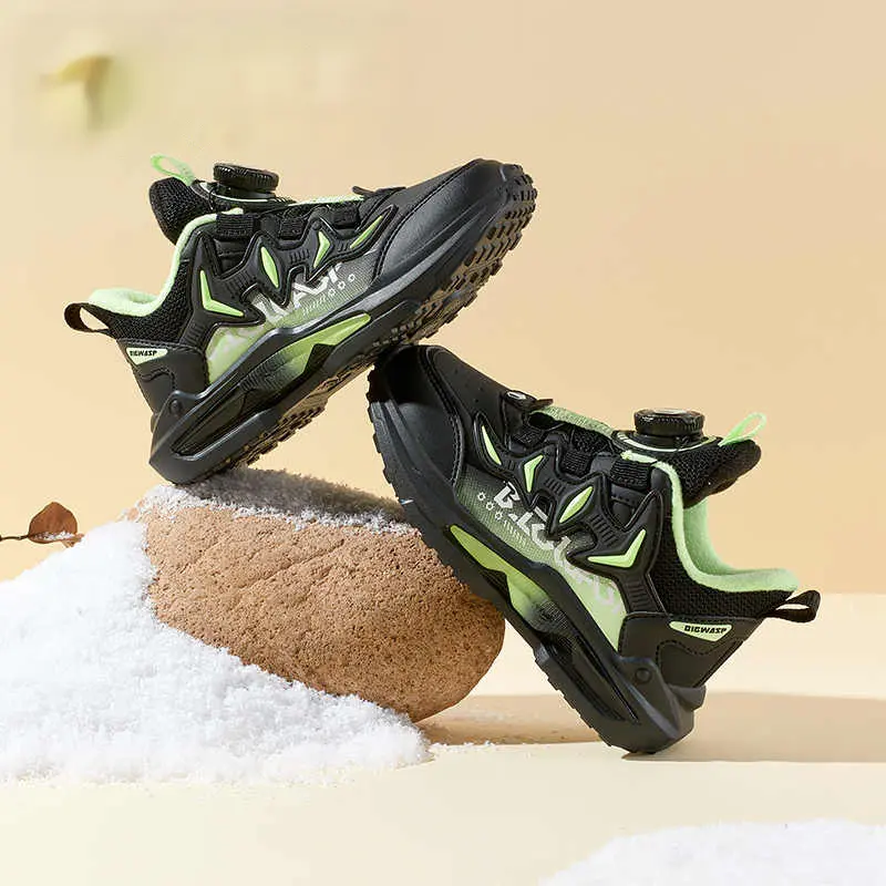 Детские кроссовки Windscreen Low top Kids' BIG WASP, черно-зеленые, из плотного хлопка