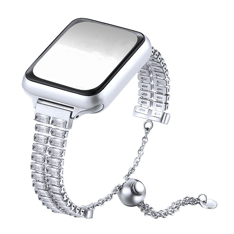 Браслет IBOANN совместим с Apple, нержавеющая сталь, с бриллиантами и двойной цепью, светло-голубой 2 542₽