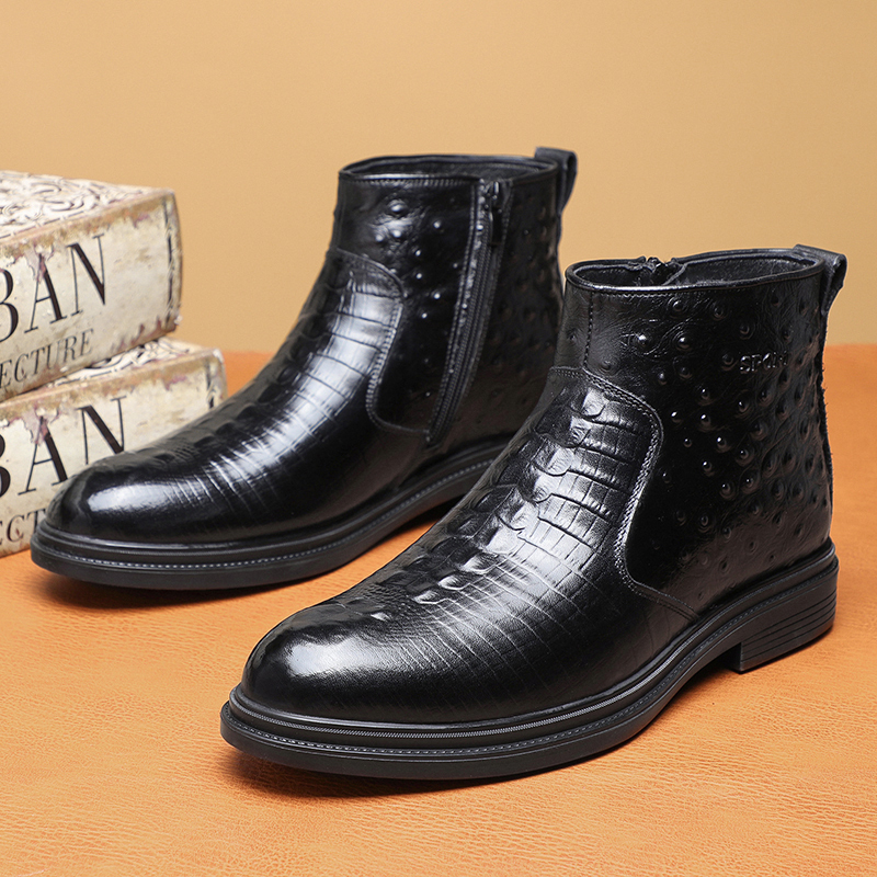 KAQIAODI Ботинки на щиколотку мужские черные Cachiotti, черные с утеплителем