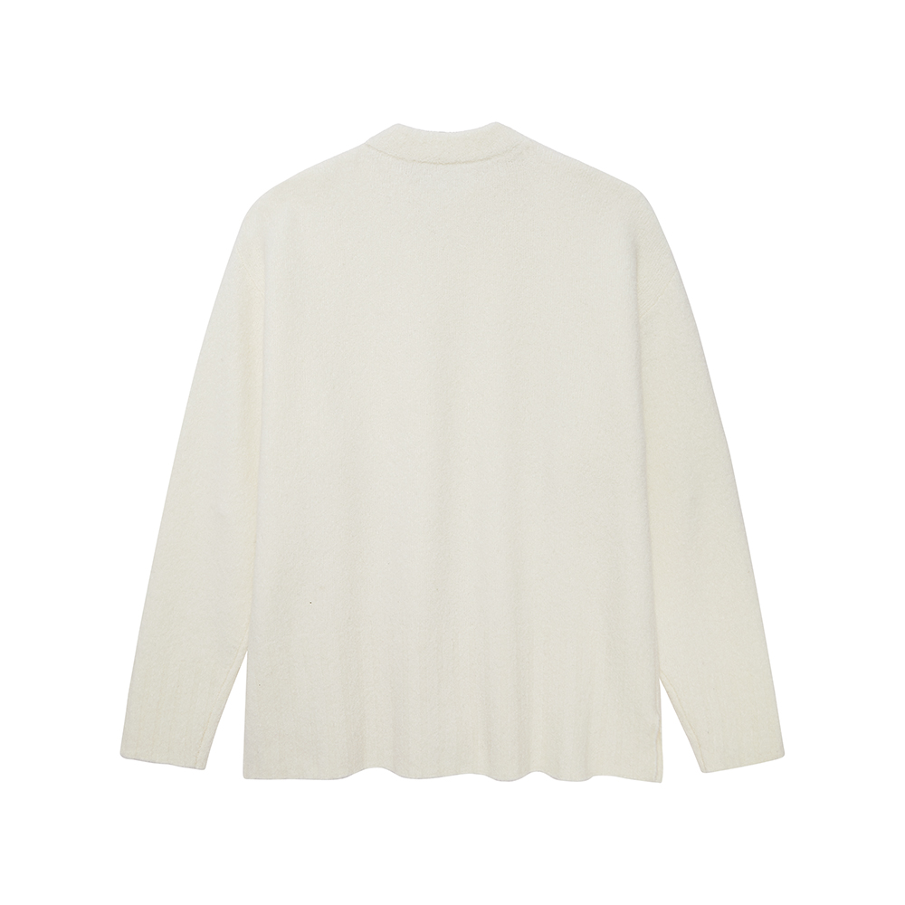 Классический вязаный свитер с круглым вырезом, естественно спущенными плечами и свободным прямым подолом создает непринужденный и непринужденный образ. Манжеты и подол выполнены с помощью расширенного ребристого переплетения, а в сочетании с крупной вязкой он создает богатый ретро-образ. Разрез по подолу создает ощущение драпировки, позволяя носить его в многослойном стиле зимой. Плотная пряжа букле из смесовой шерсти тщательно подобрана, чтобы придать этому простому изделию уникальную текстуру. ·Двухслойный ребристый вырез ·Разрезы по подолу ·7-игольное однониточное переплетение ·Основная часть выполнена полотняным переплетением ·Низ и манжеты выполнены в резинке 6*4 с использованием шелка