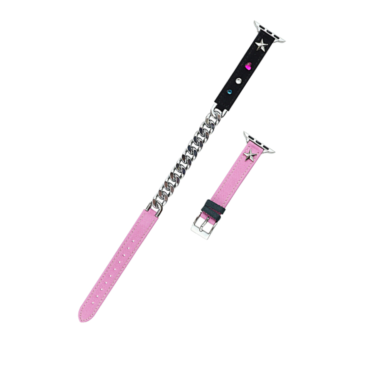 Ремешок Apple совместимость холщовый материал 44мм IBOANN, Двухпетлевая цепочка холщовый ремешок - розовый черный
