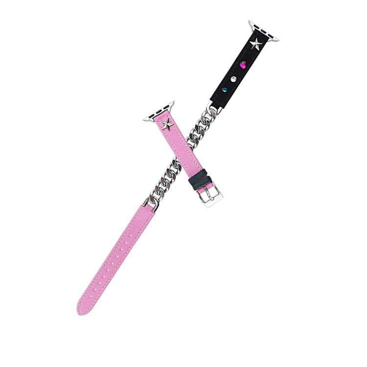 Ремешок Apple совместимость холщовый материал 44мм IBOANN, Двухпетлевая цепочка холщовый ремешок - розовый черный 2 972₽