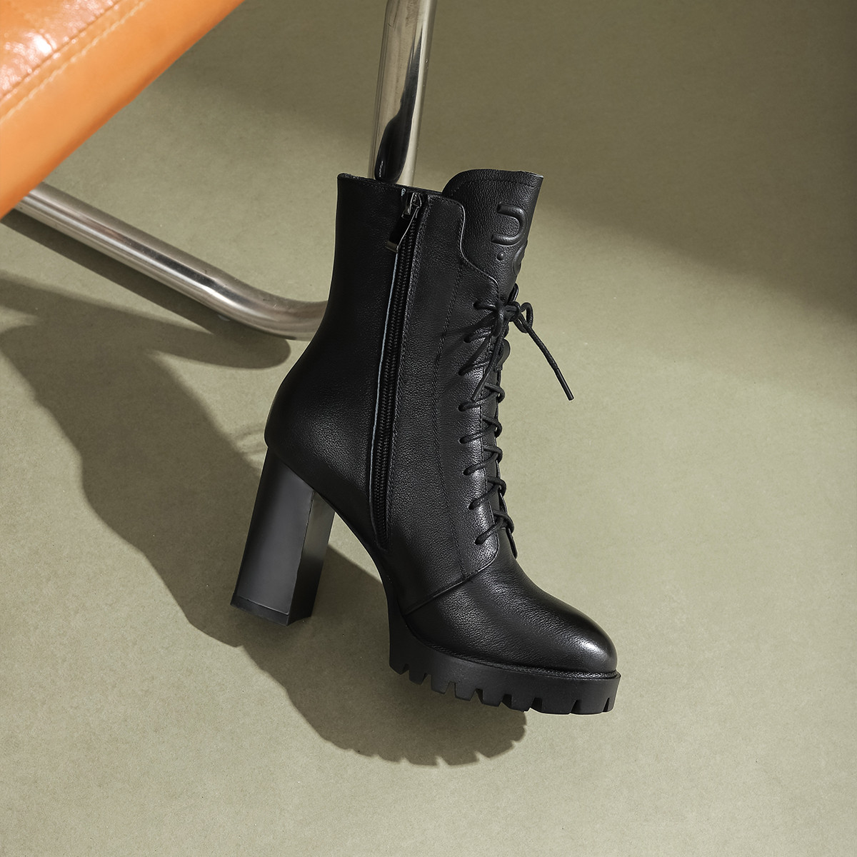 Ботильоны женские черные PIERCE GENTRY на каблуке 9 см, черные (с меховой подкладкой)