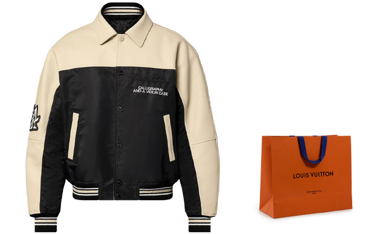 Подлинная кожаная бейсбольная куртка LOUIS VUITTON с нашивкой-логотипом 2010-х годов, черная