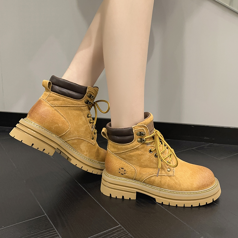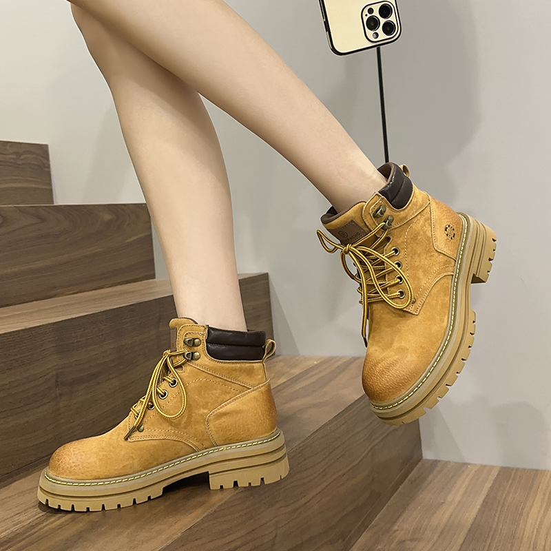 Мартин Бут 5см Женские Жёлтые GIGIRYO, Жёлтый Скрытый Каблук