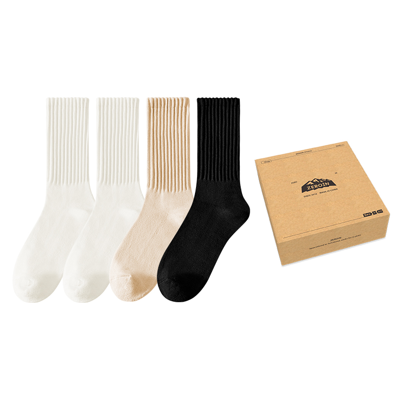 Унисекс носки до середины икры ZEROIN, 2 молочно-белый+бежево-желтый+черный