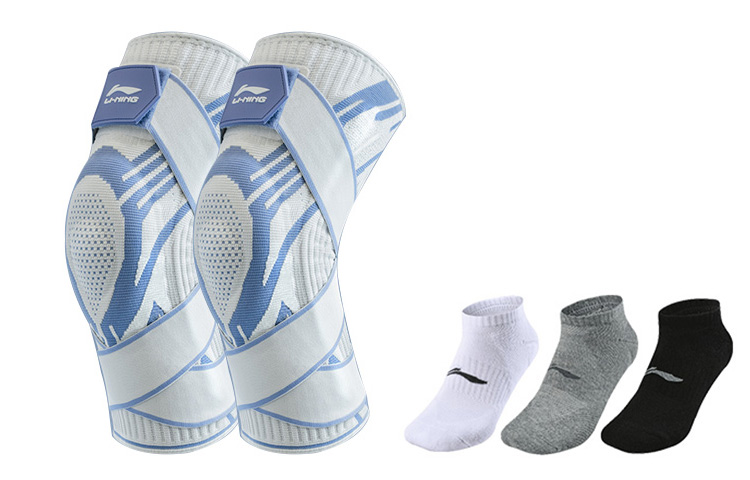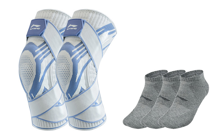 Лининг Наколенники Баскетбольные Унисекс, Синий Серый+Белый Напульсник