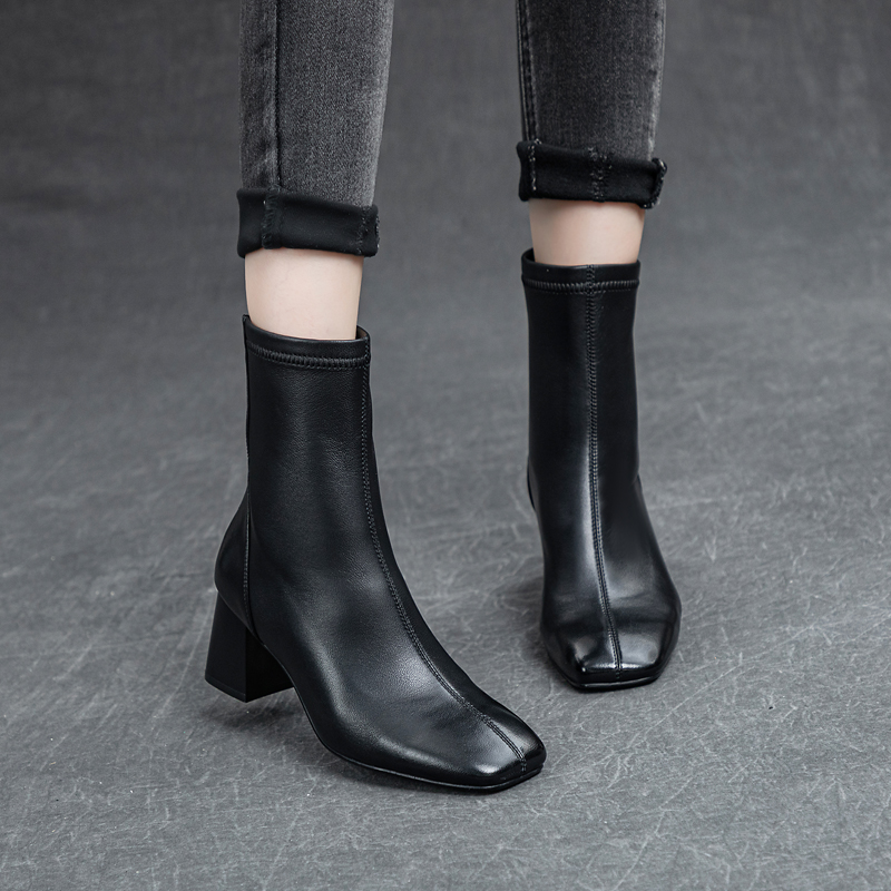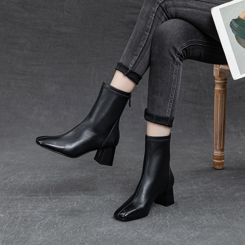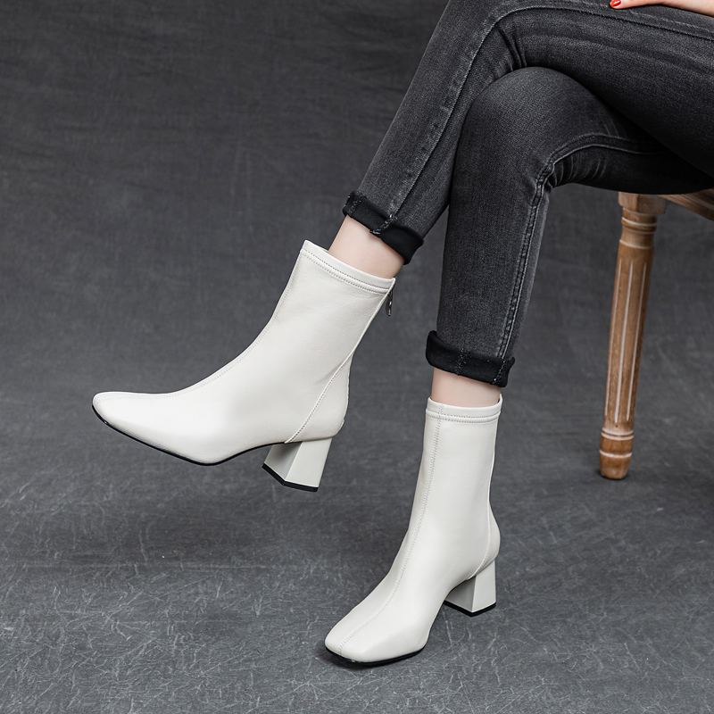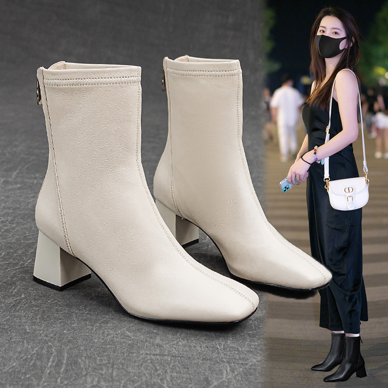 Женские полусапожки Чёрный/Бежевый CHOVO, Экрю
