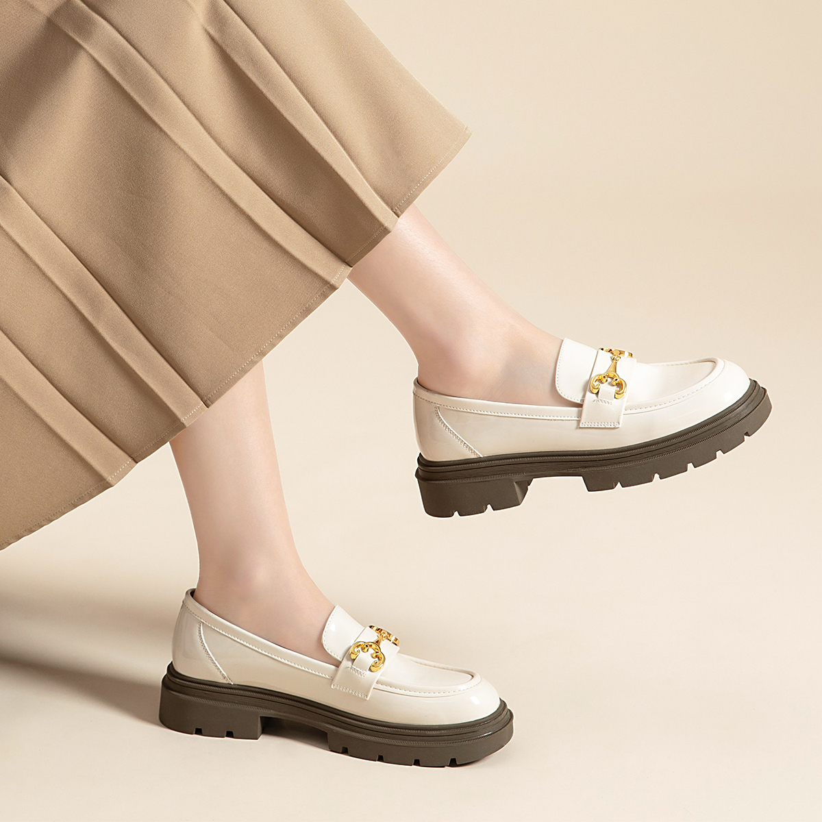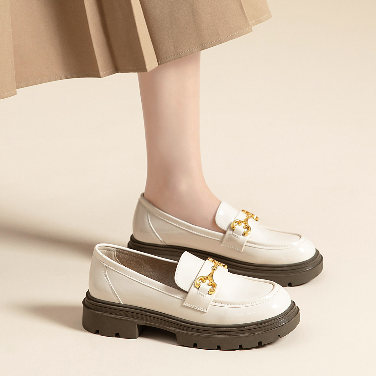 Женские лоферы ZHR бежевые, бежевые [Матовые утепленные на платформе] AH555 2 568₽