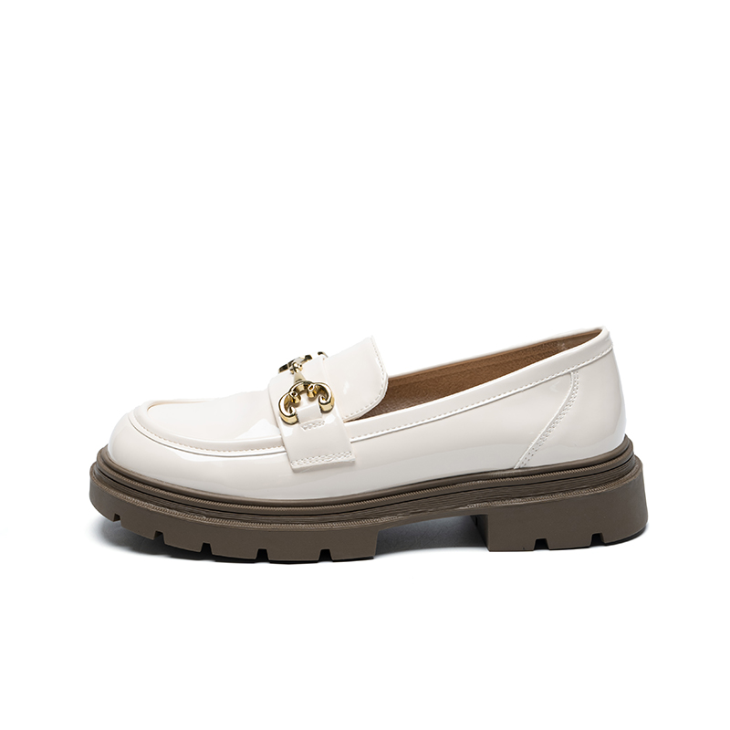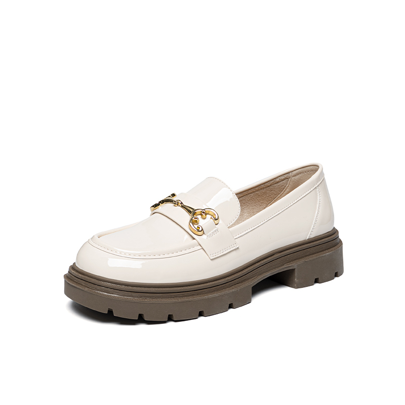 Женские лоферы ZHR бежевые, бежевые [Матовые утепленные на платформе] AH555