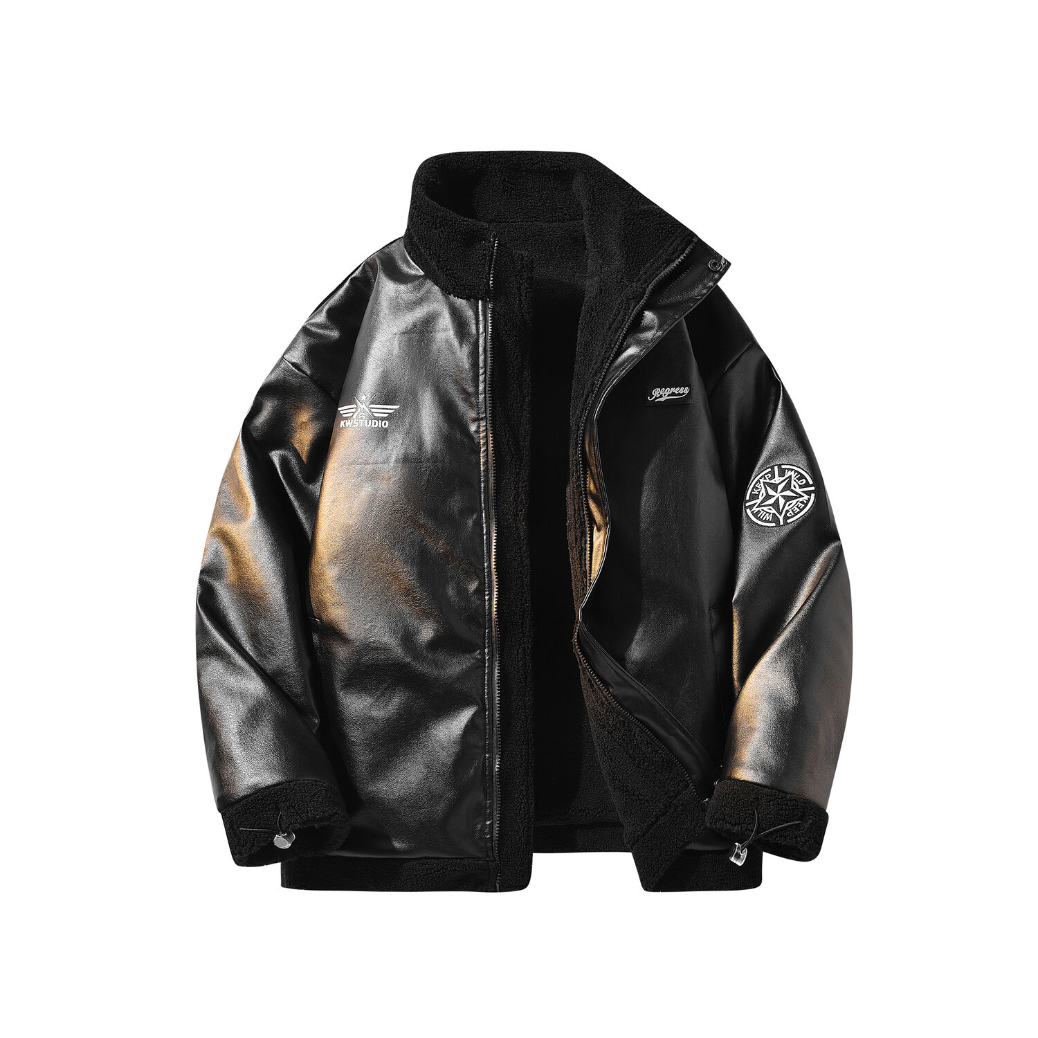 Кожаная куртка унисекс KW, черная (в комплекте немецкий флисовый базовый слой)