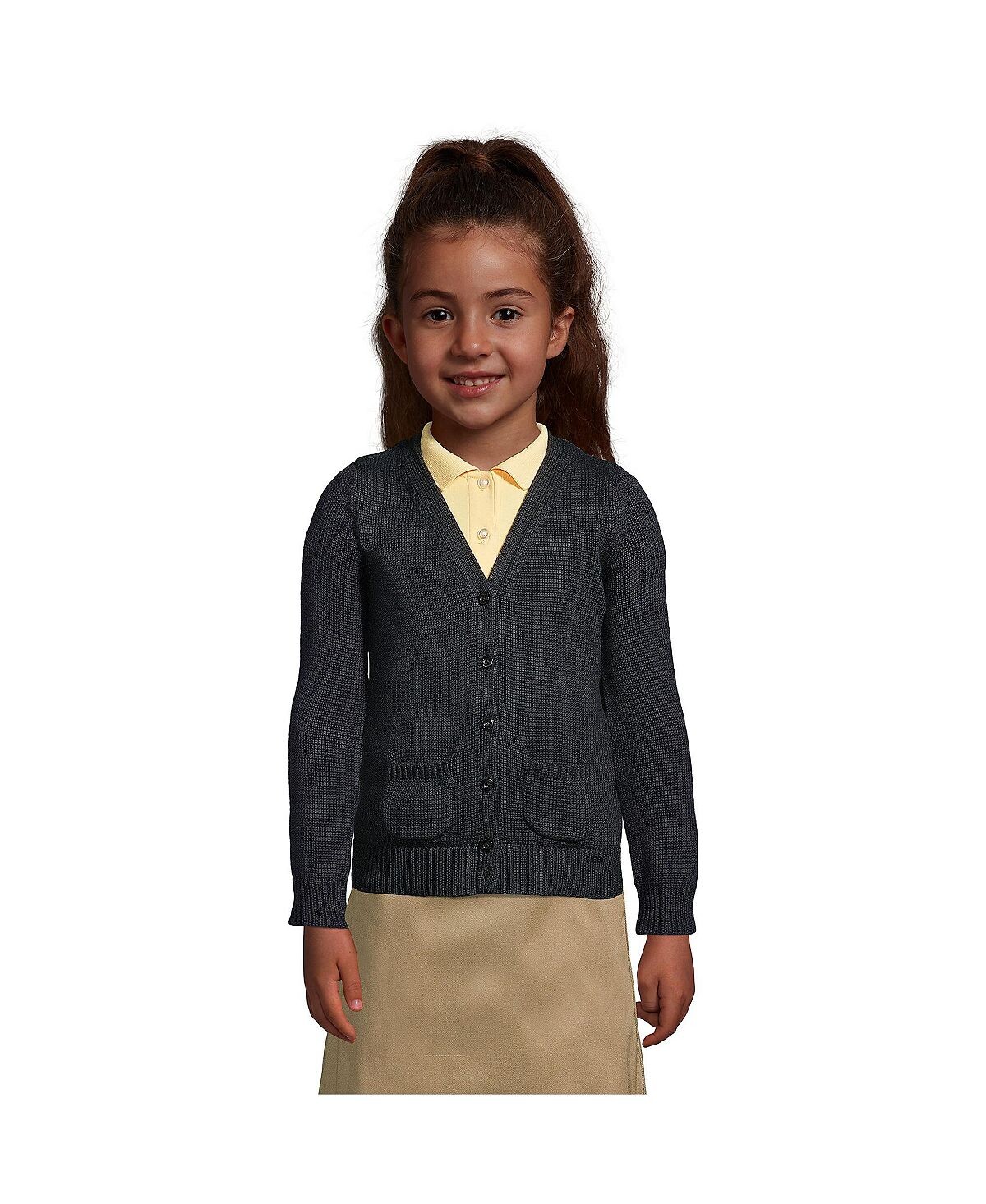 Детская школьная форма для девочек, хлопковый свитер с модальными пуговицами спереди Lands' End