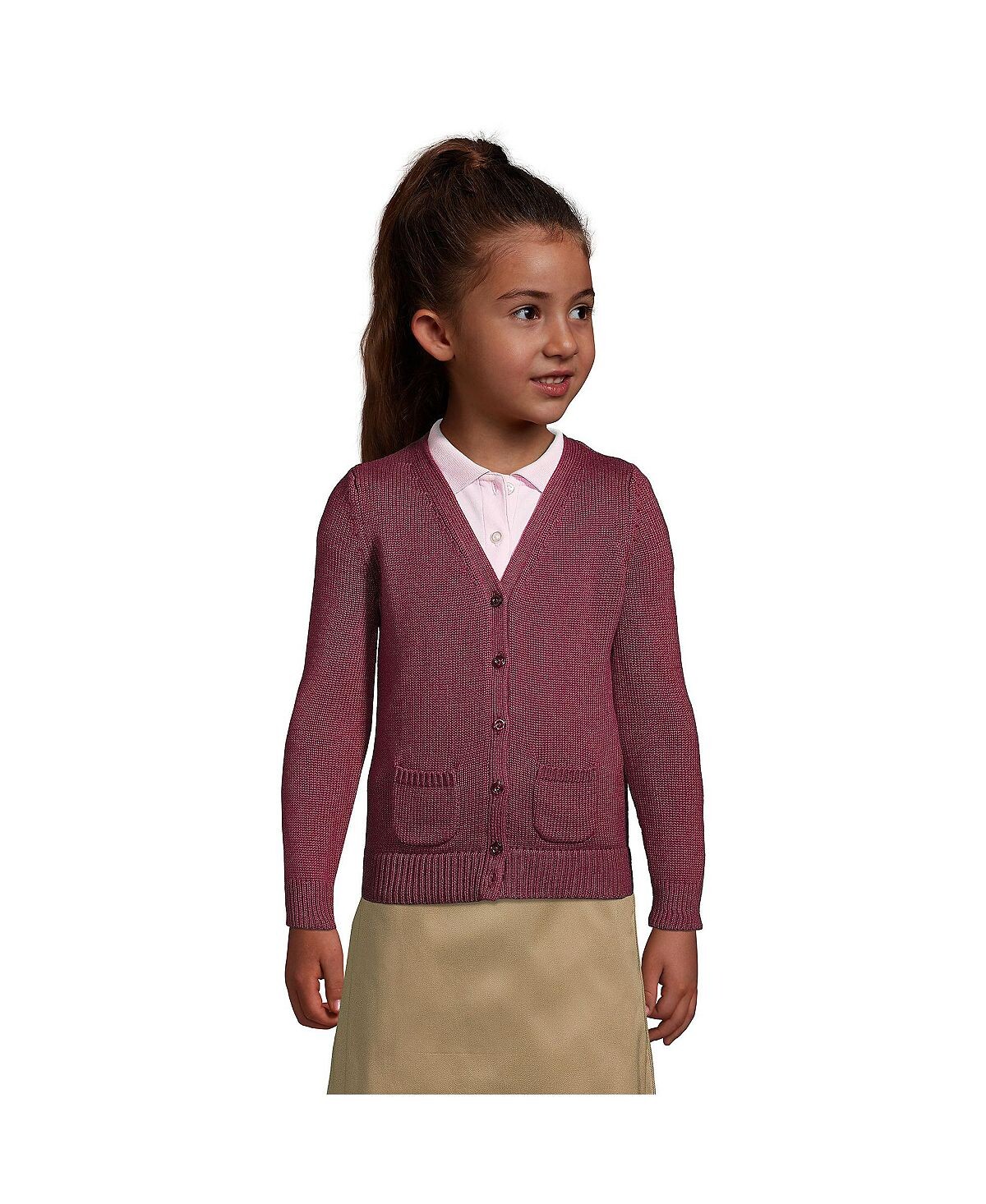 Детская школьная форма для девочек, хлопковый свитер с модальными пуговицами спереди Lands' End
