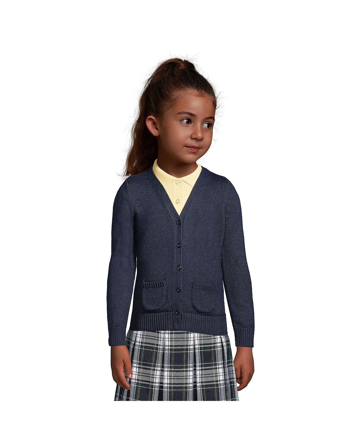 Детская школьная форма для девочек, хлопковый свитер с модальными пуговицами спереди Lands' End