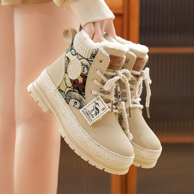 Ботинки CAHHRRN Мартин до середины икры со вставкой, бежевый