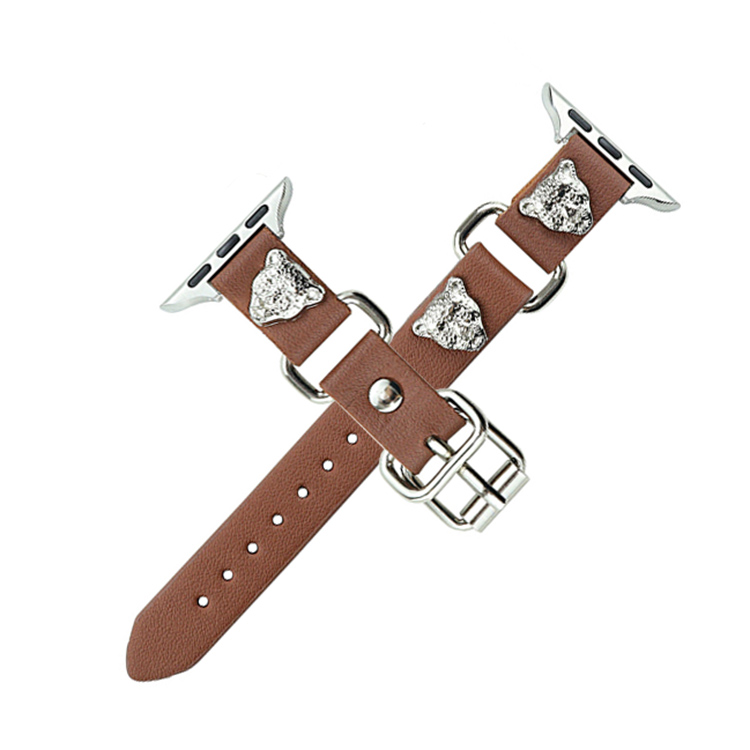 Ремешок Apple совместимый кожаный 49мм IBOANN, коричневый с леопардовым принтом