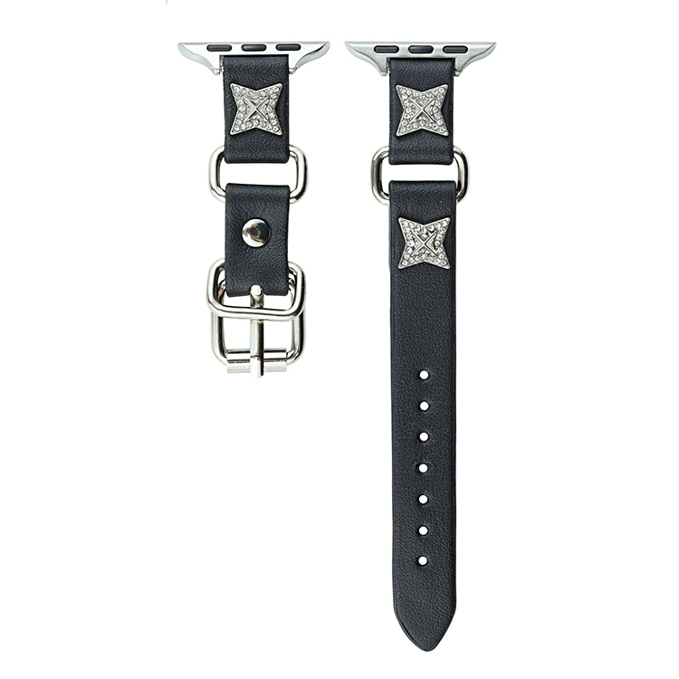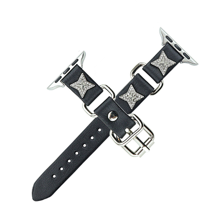 Ремешок Apple совместимость кожа 49мм IBOANN, черные бриллианты