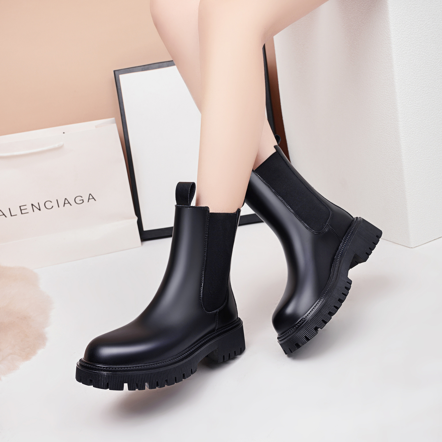 Женские короткие черные сапоги Chelsea 5 см, черные, на флисовой подкладке 4 310₽