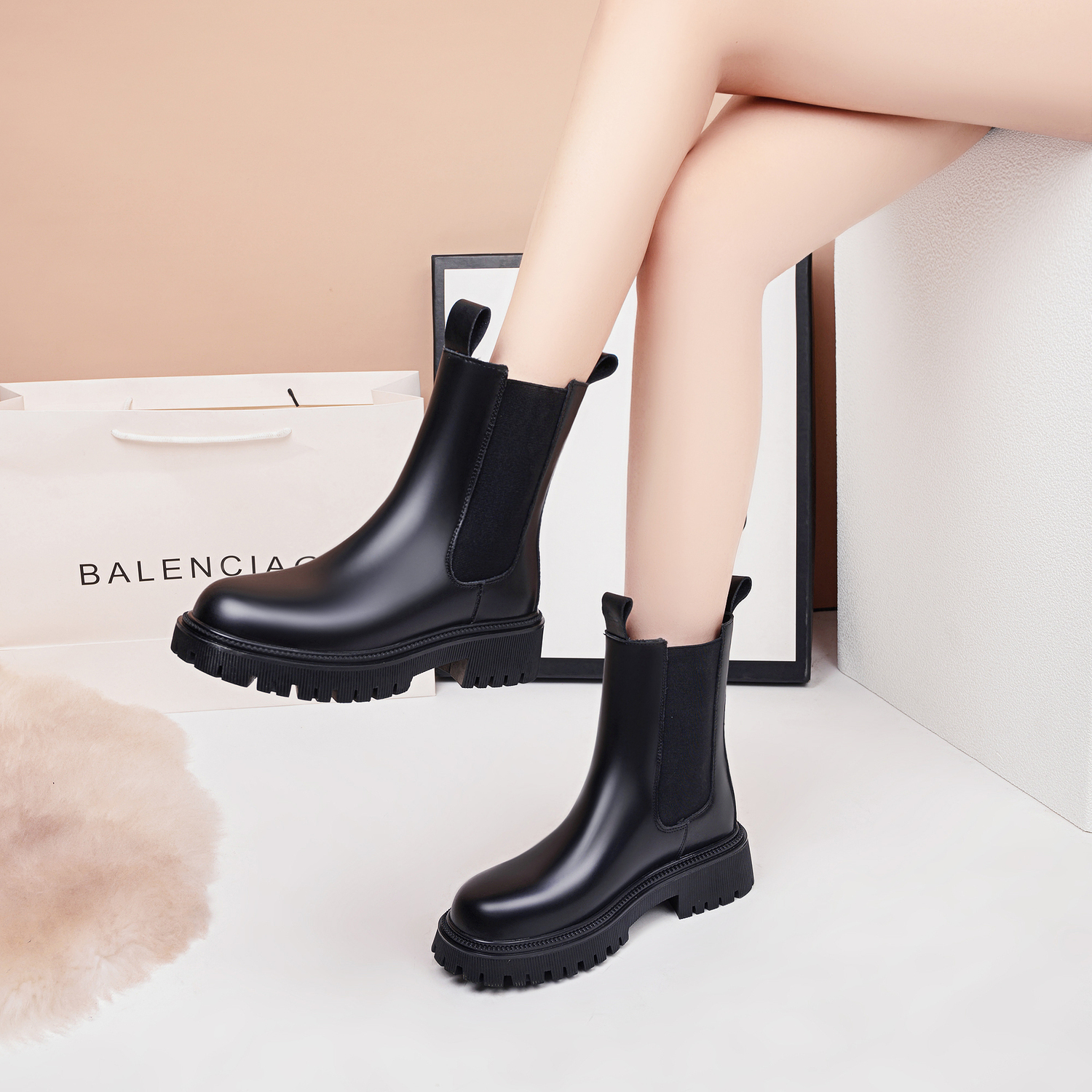 Женские короткие черные сапоги Chelsea 5 см, черные, на флисовой подкладке