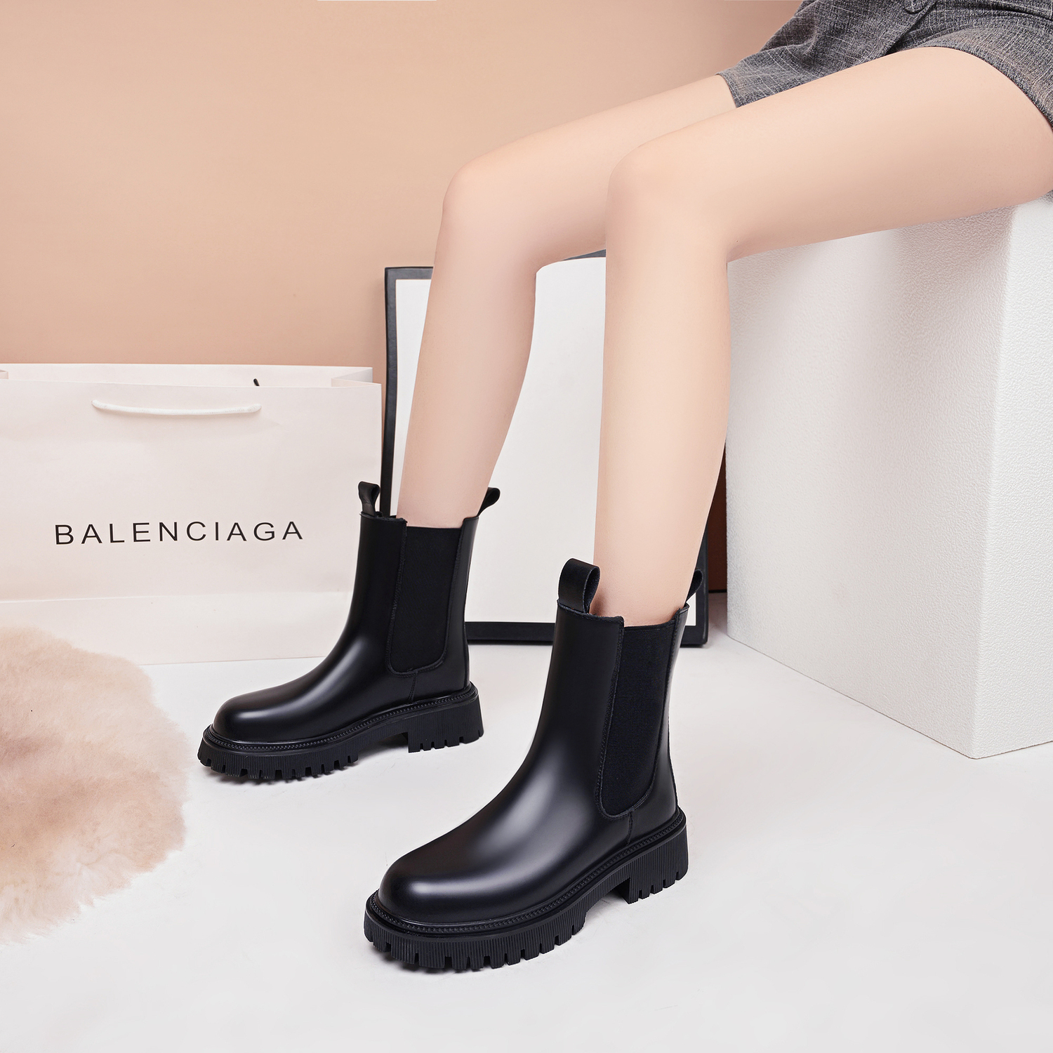 Челси-ботфорды короткие 5 см женские черные Help, черные без подкладки