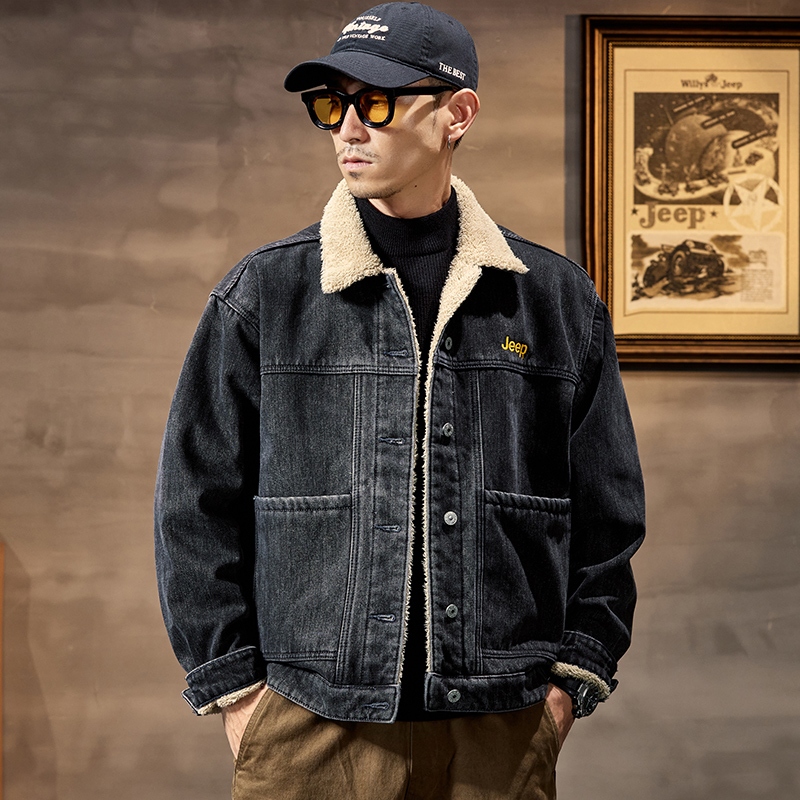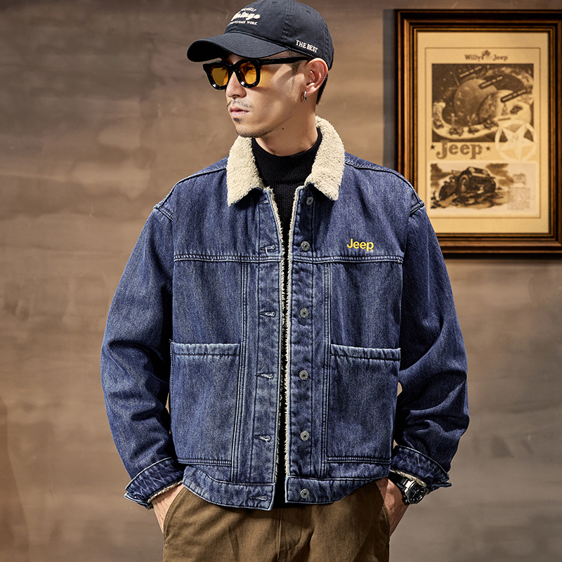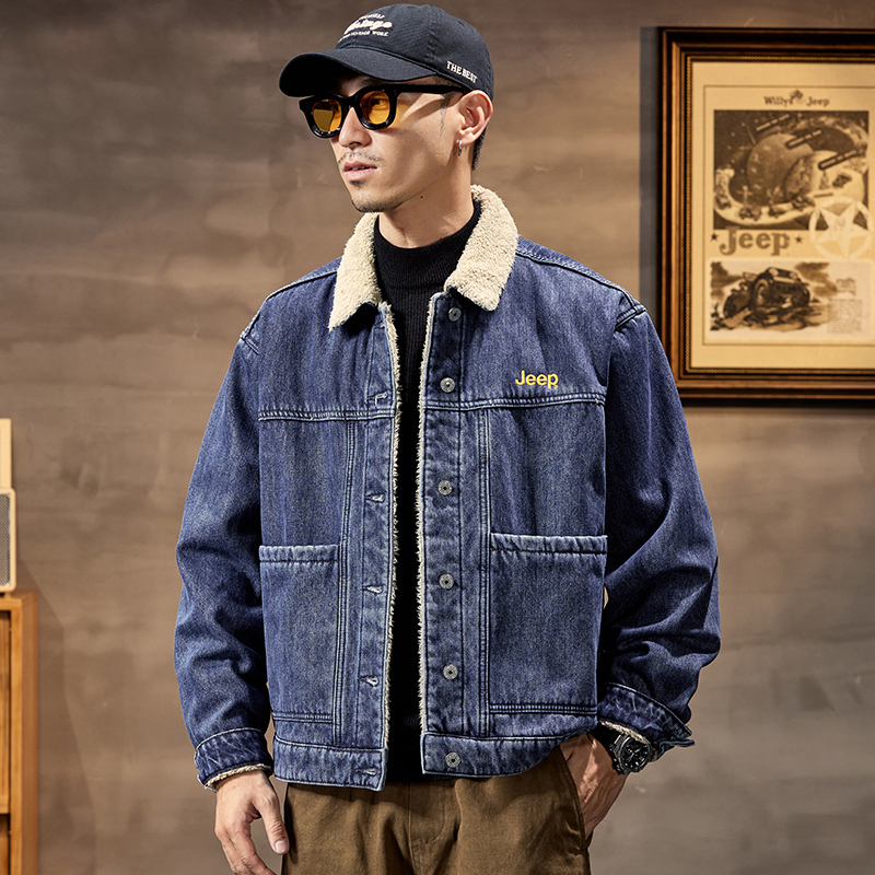 Джинсовая куртка мужская Jeep, темно-синяя на флисовой подкладке