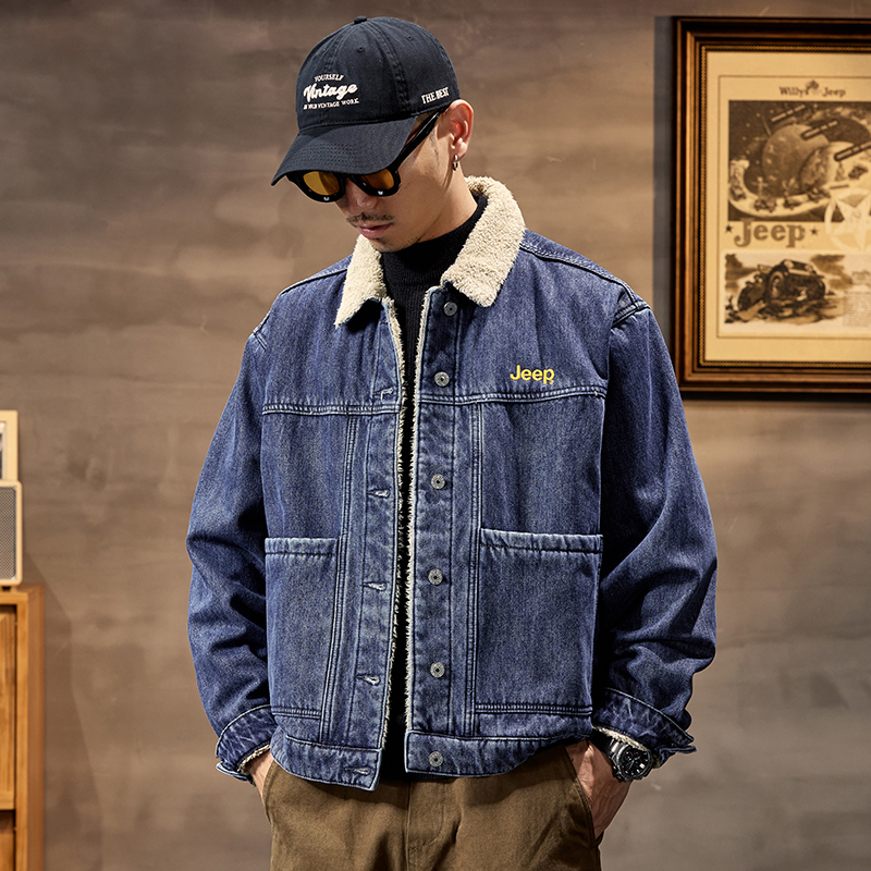 Джинсовая куртка мужская Jeep, черная на флисовой подкладке