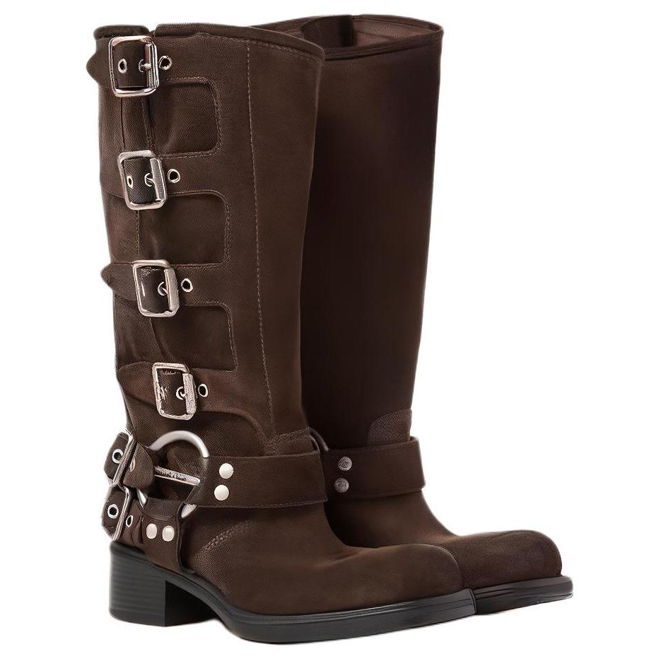 Ботинки на устойчивом каблуке с деталью-пряжкой MIU MIU, Коричневый