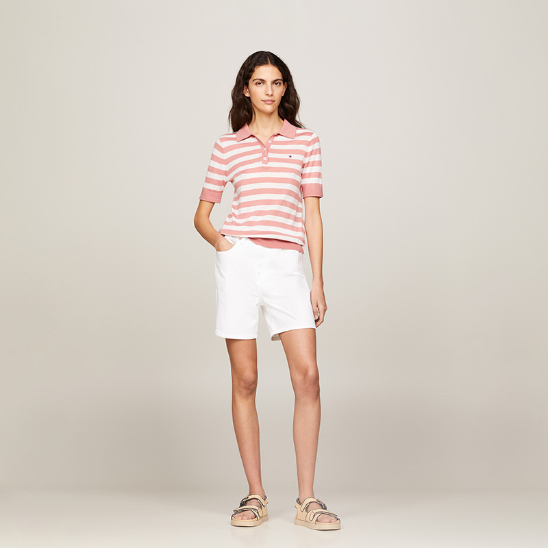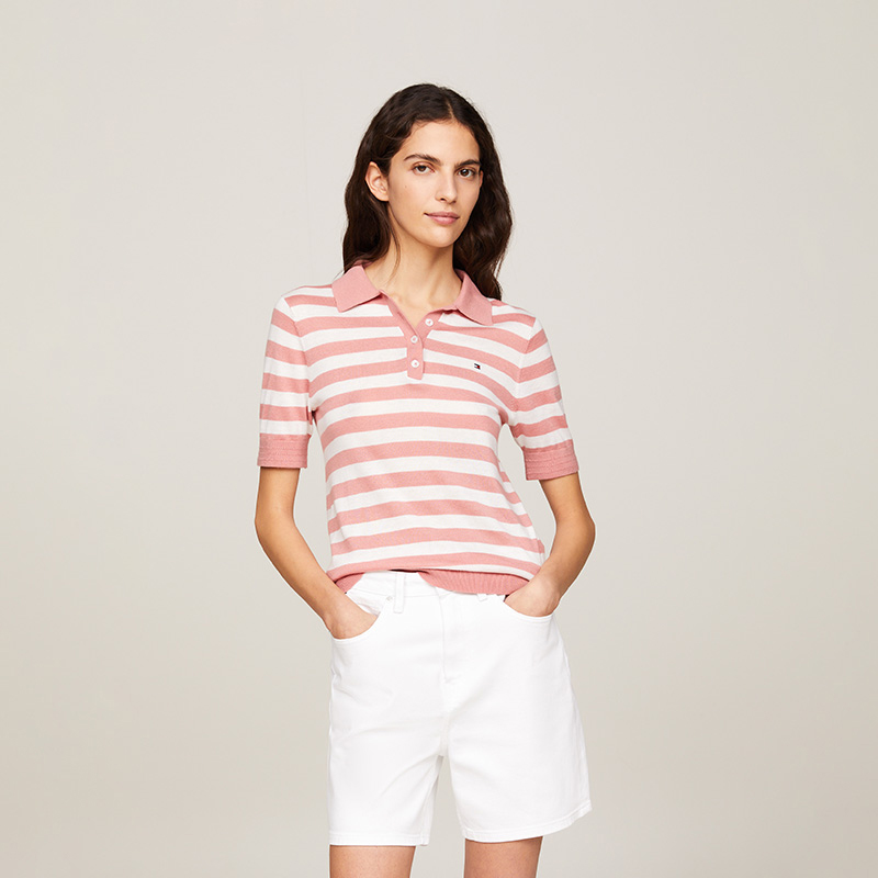 Трикотажная футболка Tommy Hilfiger, бежево-белая в синюю полоску 0FC