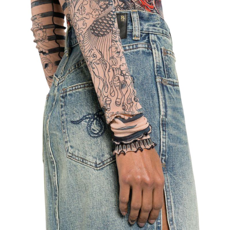 Футболка с необработанным краем миди из денима R13, Индиго