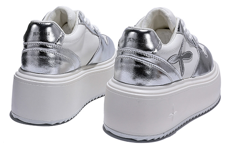 Низкие женские скейтбордские кроссовки Junjali серебристые без подкладки 7 см